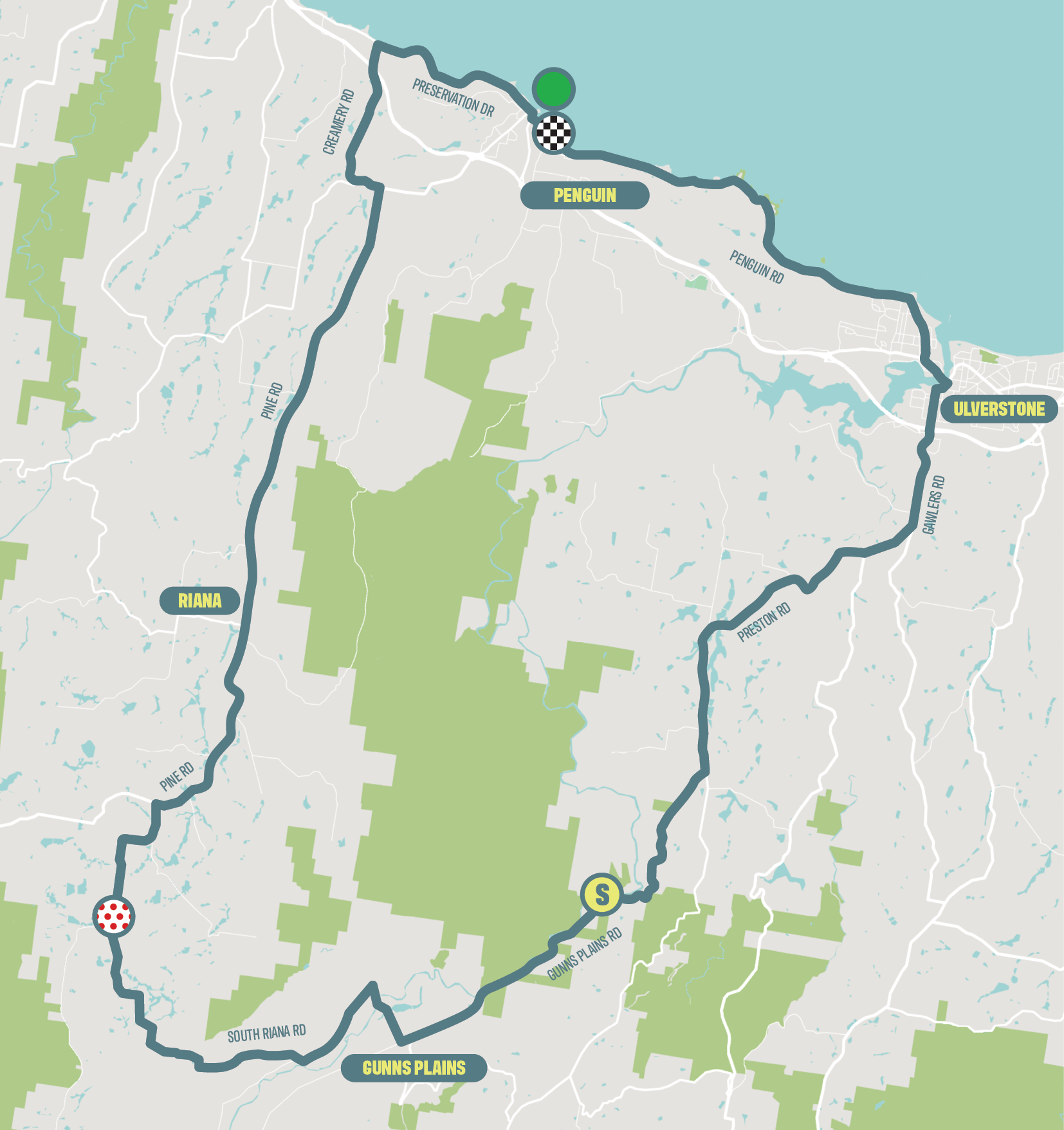 Start/Finish Location: Gunns Plains Rd/Crescent St, Penguin